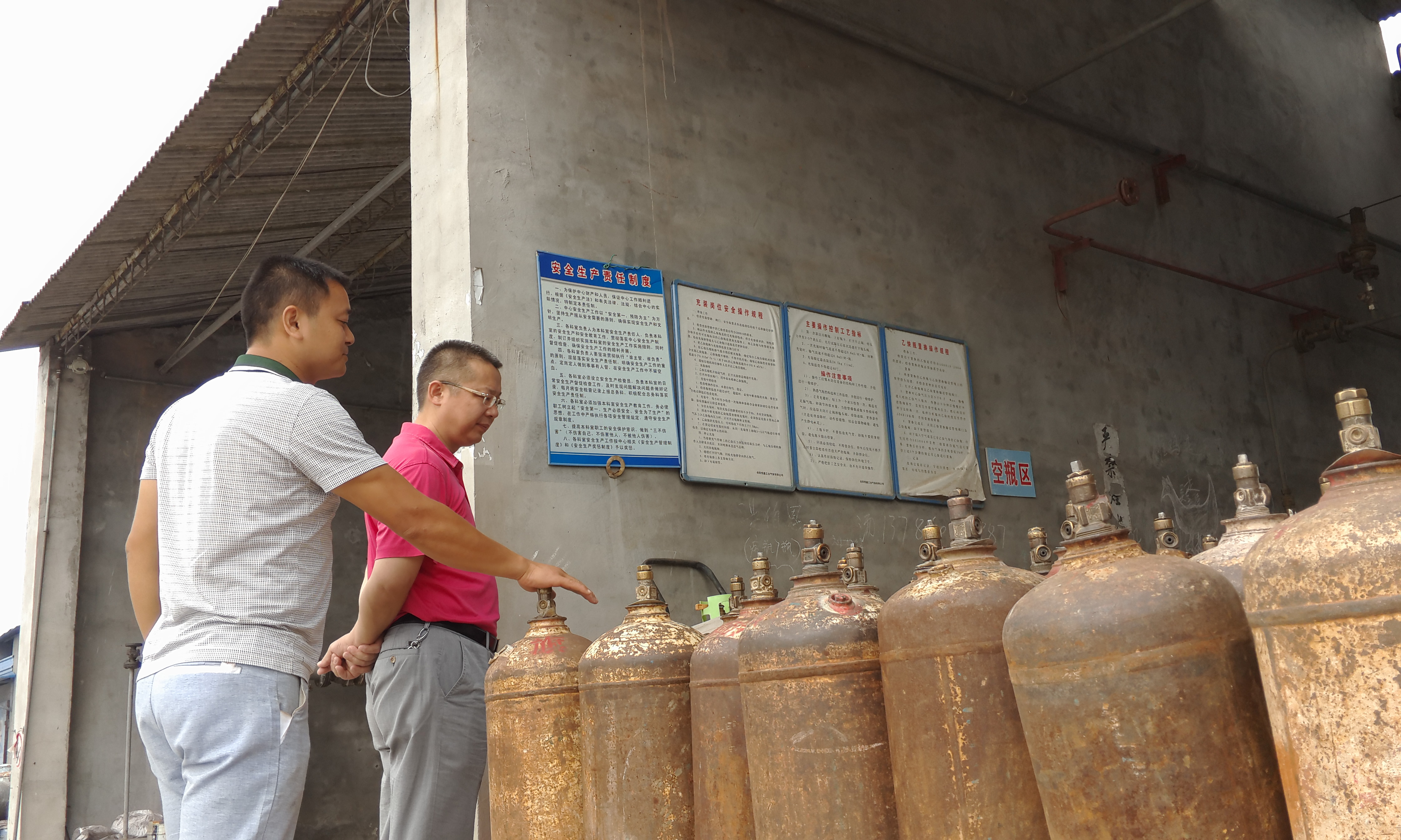8月17日上午,黄岳山主任亲自带领刘其元副主任、业绩考核与分配科谢军和国资公司陈忠良副总对城陵矶肉联厂冷库、岳阳恒鑫工业气体有限公司、原市磷肥厂仓库、小龙城市场、粮都宾馆、弘明创意园等单位进行了拉网式安全检查。