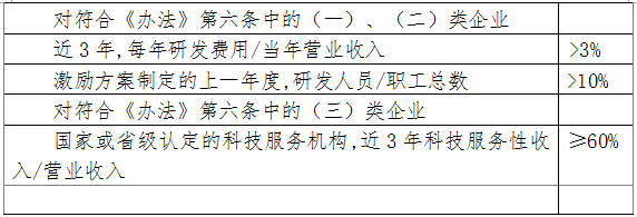 答:根据《办法》第六条规定,企业应建立规范的内部财务管理制度和员工绩效考核评价制度,年度财务会计报告经过中介机构依法审计,且激励方案制定近3年未因财务、税收等违法违规行为受到行政、刑事处罚。成立不满3年的企业,以实际经营年限计算。近3年的财务指标要求如下: