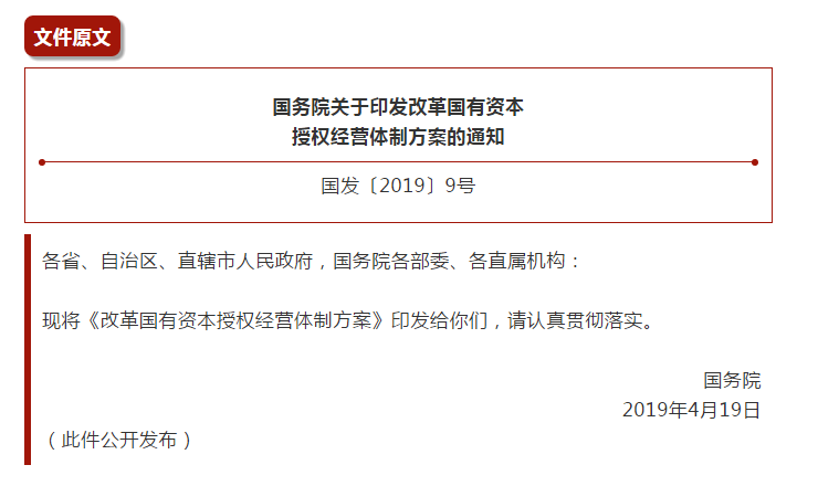 近日,国务院印发《改革国有资本授权经营体制方案》(以下简称《方案》)。