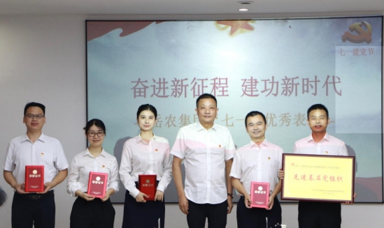 党委书记、董事长邹国良代表集团党委对市国资委系统优秀共产党员张风、彭宇恒,优秀党务工作者孙璐瑶,先进基层党组织岳阳市农业农村发展集团有限公司第五党支部以及市直单位优秀共产党员戴贝给予先进表彰。现场颁发证书、合影留念。