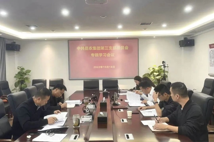 为深入学习贯彻党的二十大精神,岳农集团第三党支部坚持先学一步、深学一层,切实把思想和行动统一到大会精神上来。10月18日,集团第三党支部在五楼会议室召开专题学习会,集团公司党委副书记蒋文胜、纪委书记蔡波带领支部全体党员围绕党的二十大报告进行讨论交流,会上大家纷纷发表感想体会。