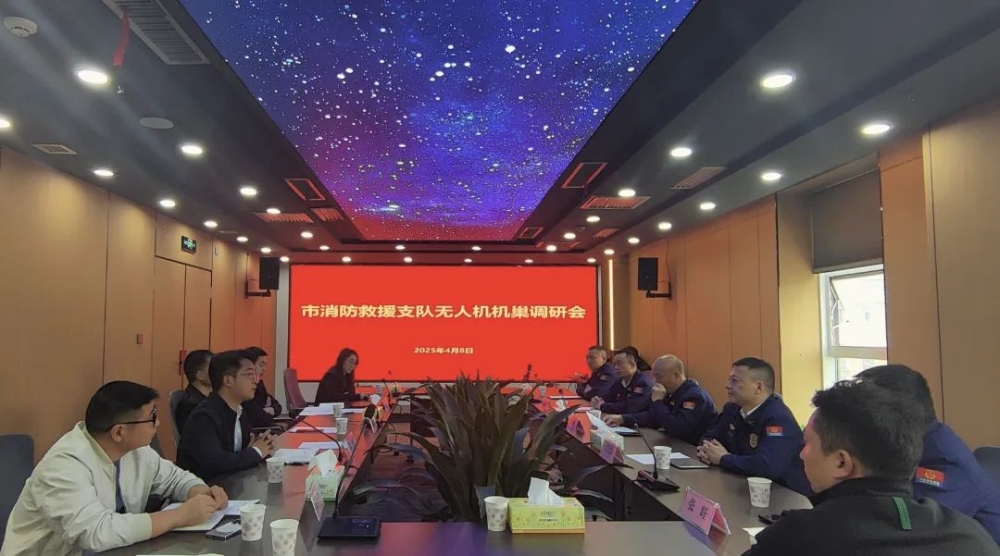 为深化智能无人机在消防救援领域的应用,推动“智慧消防”体系建设,4月8日,岳阳市消防救援支队副支队长秦绍兴率队来我司开展无人机机巢群建设及应用调研,市资规局测绘地理信息科科长闵金红、市测绘院有限公司董事长郑君、总经理杨密等参加。