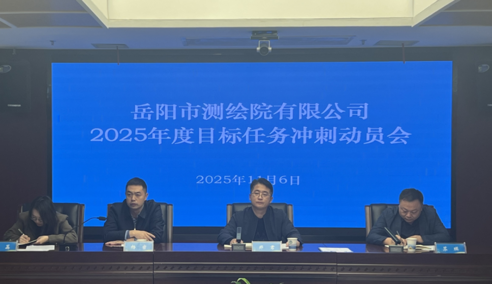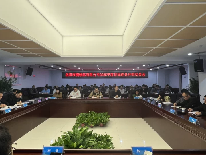 11月6日,岳阳市测绘院有限公司召开2025年度目标任务冲刺动员会,全面总结阶段性经营成效,分析当前行业形势,研判潜在风险,部署全年目标任务冲刺工作。公司领导班子与全体员工参加,支部书记、董事长郑君主持并讲话。