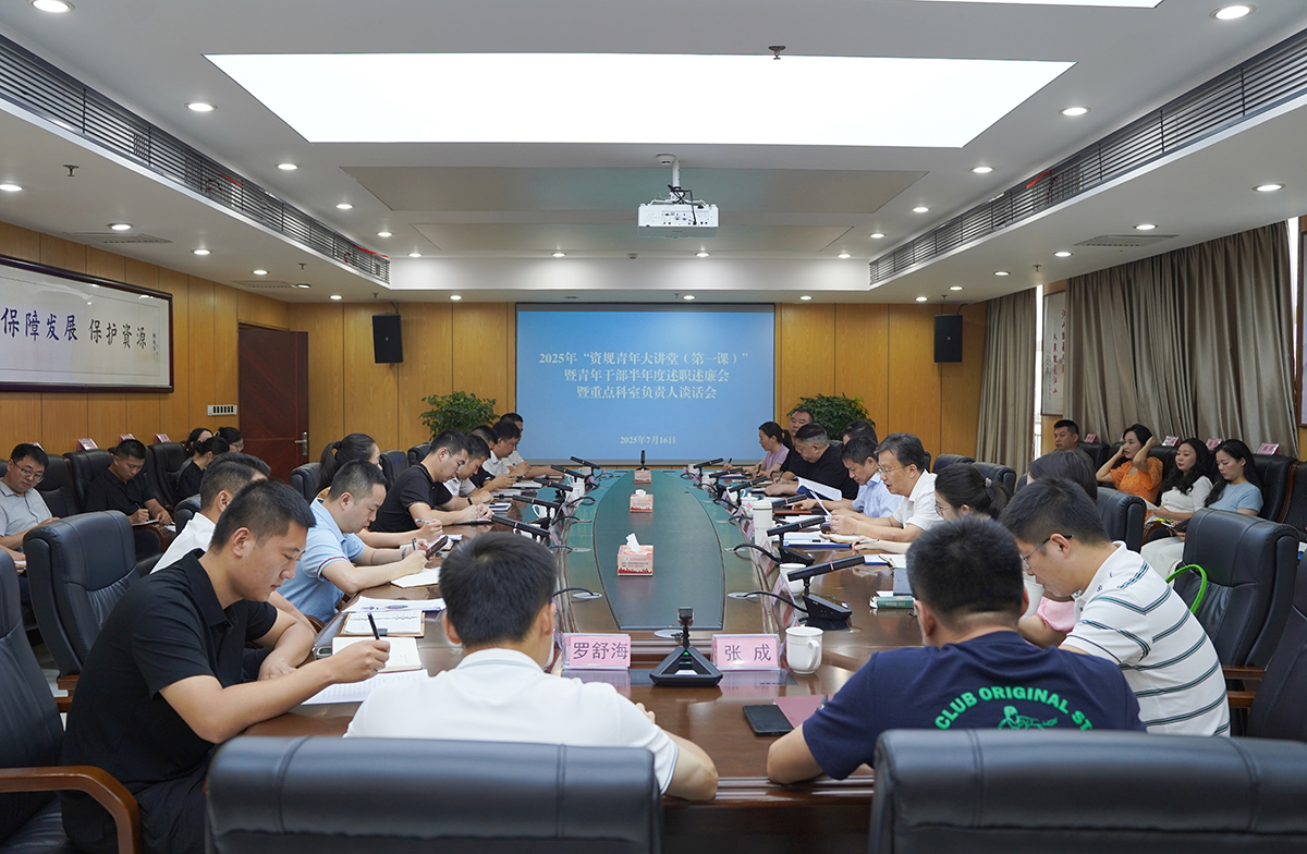 7月16日,市自然资源和规划局召开2025年“资规青年大讲堂(第一课)”、青年干部半年度述职述廉会暨重点科室负责人谈话会,局党组书记、局长许淞出席会议并讲话,局党组成员、副局长胡伟华主持会议,局党组成员、副局长梁盛发对青年干部作廉政谈话,驻局纪检监察组列席会议,机关相关重点科室负责人、青年干部能力提升小组组长和组员参加。